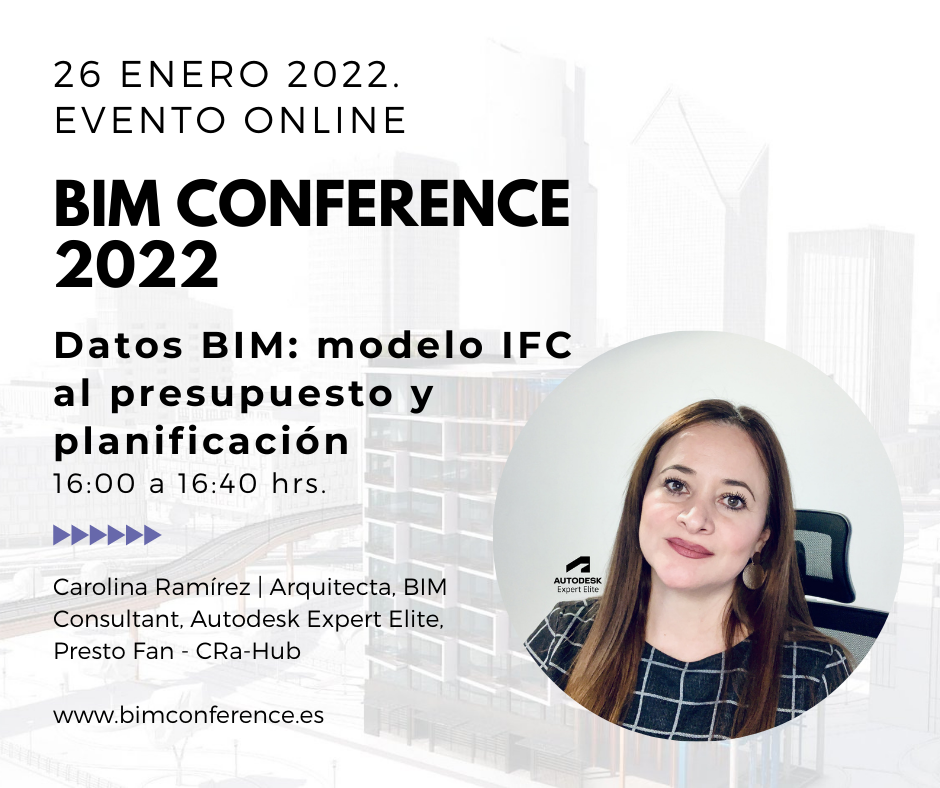 Danos tus datos y podrás acceder a la grabación de la sesión sobre Datos BIM: modelo IFC al presupuesto y planificación que realizó Carolina Ramírez en la BIM Conference 2022.